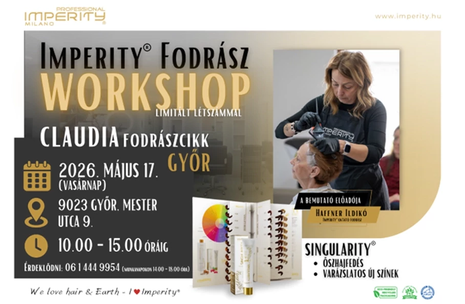 Csatlakozz Workshopunkhoz Győrben, ahol mindent megtudhatsz a Singularity® vegán krémhajfestékról és a megfizethető professzionális Imperity® hajkozmetikumok világáról!